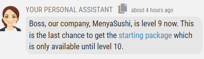 Tip 1. 레벨 9가 되면 스타터 팩을 살 마지막 기회라고 메시지가 옵니다. 솔직히 현질을 안하려면 얼마든지 안 할 수 있는 게임이기 때문에 안 사도 됩니다. 저는 딱히 이득을 본다기 보다는 운영진에 대한 리스펙의 의미로 샀습니다.