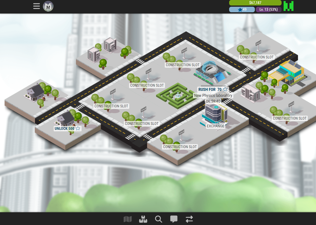 짓는 데 7시간이나 걸리는 대공사이므로, 그 동안 다른 일을 하거나 Grocery Store을 지어서 소소하게 차익거래를 하는 것도 나쁘지 않습니다. 물론 Physics Lab을 짓고 나서는 Physics Lab을 제외하곤 남겨두지 마세요.